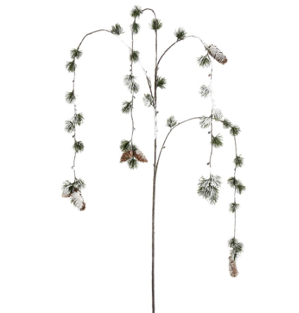 Rama colgante nevada de pino con piñas 137 cms