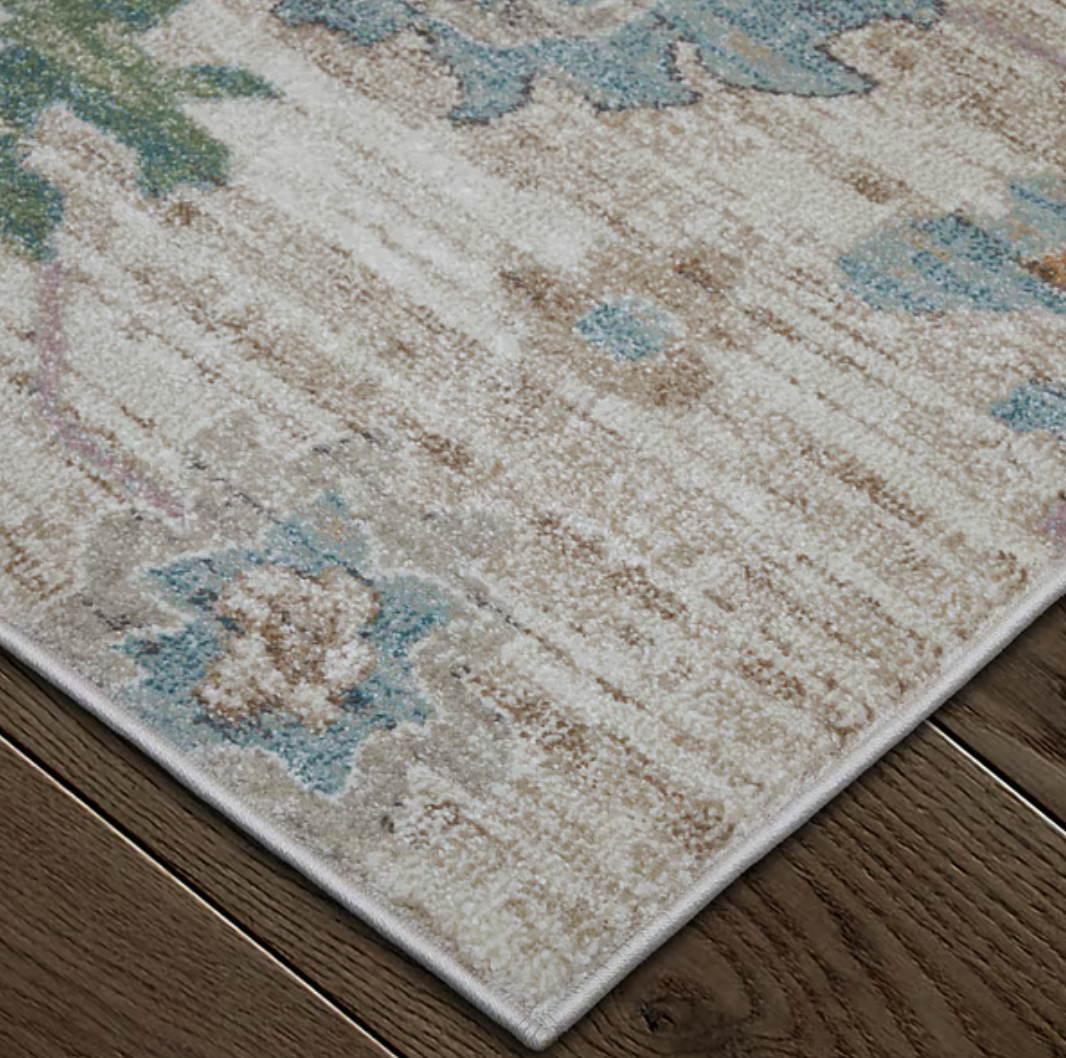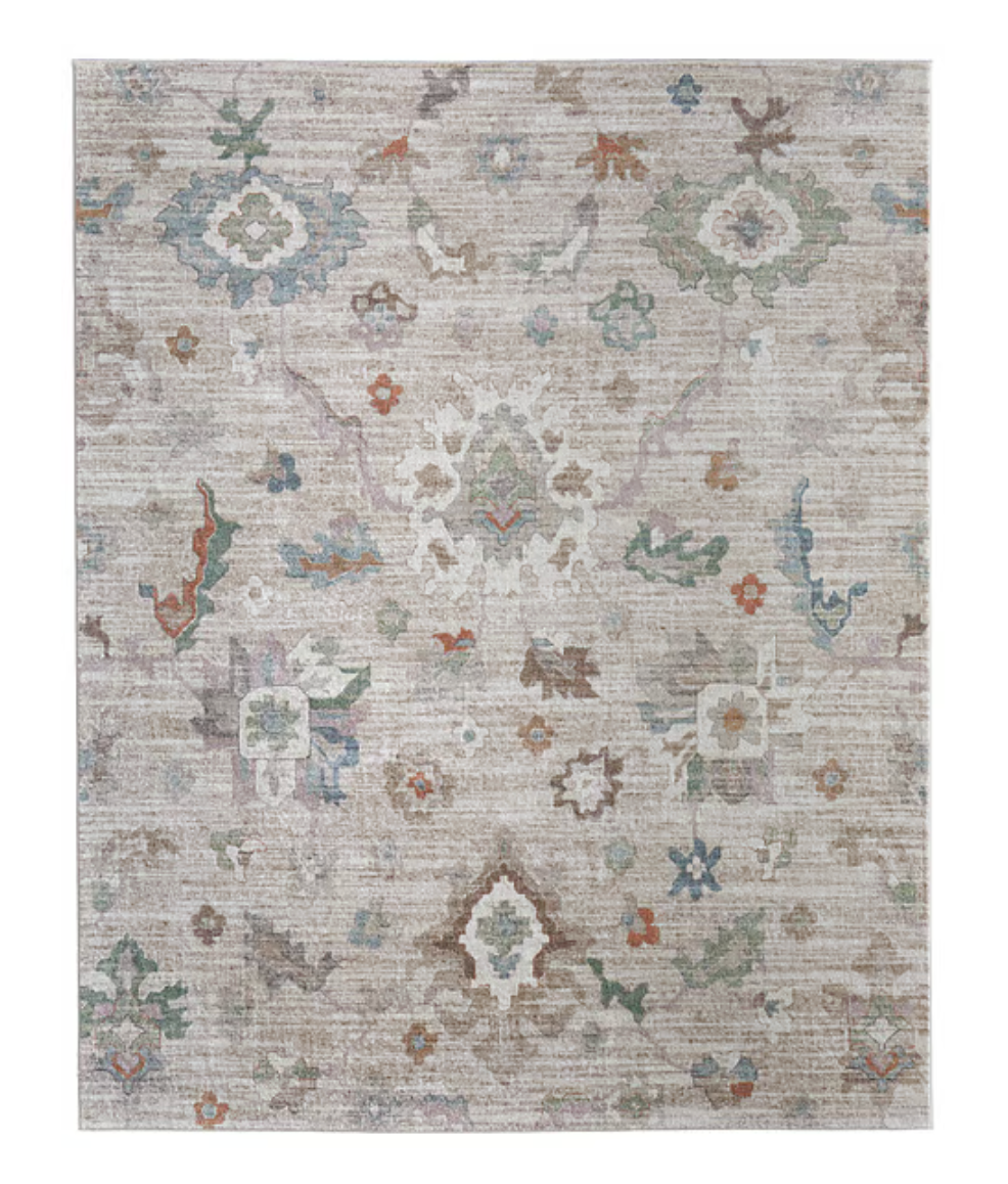 Diseños tradicionales con patrones en inspiración persa. Paleta de tonalidades marfil, beige, gris, azul, verde que convierte versátil cualquier habitación.