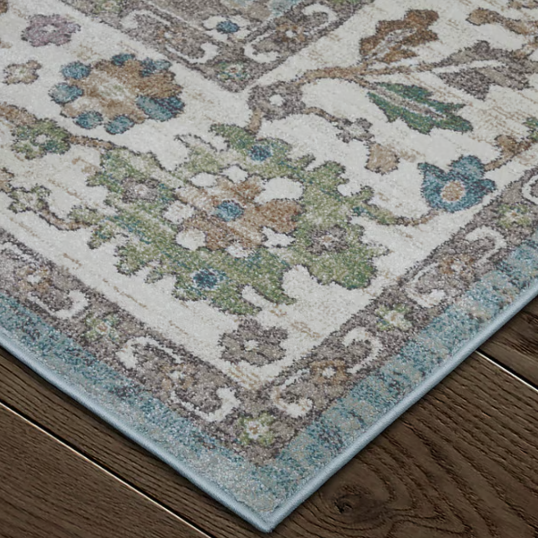 Diseños tradicionales con patrones en inspiración persa. Paleta de tonalidades marfil, beige, gris, azul, verde que convierte versátil cualquier habitación.