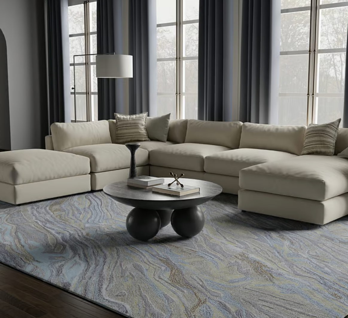 Con una paleta que abarca desde azules intensos hasta rosas vibrantes, esta alfombra transforma cualquier espacio.