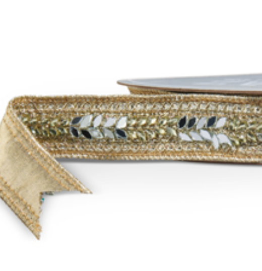 Liston 1" X 5 Yds Gold Jeweled Wired Ribbon