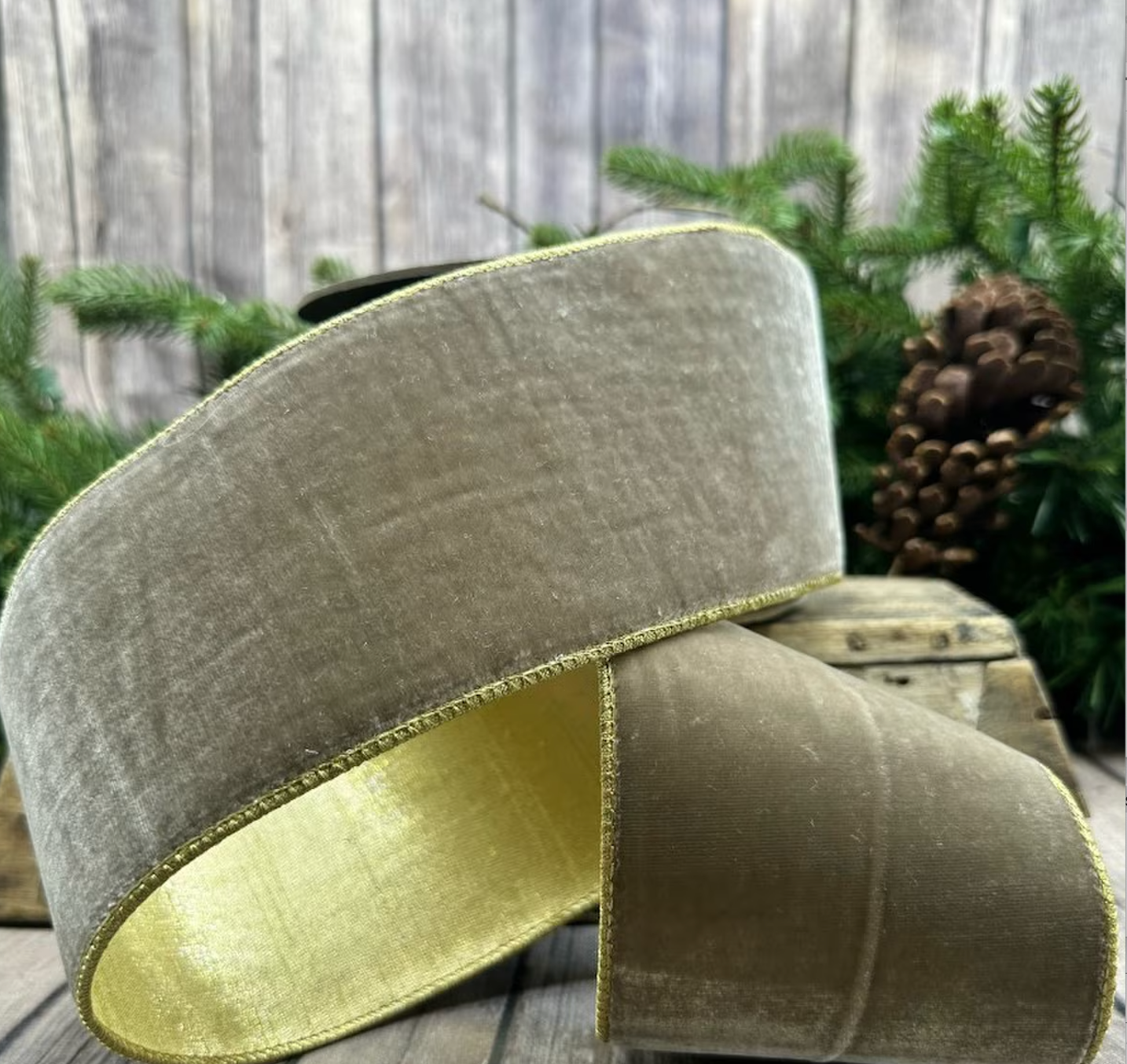 LISTON 4'' X 10 YD TERCIOPELO PLATINUM, TRIM ORO Y REVERSO ORO