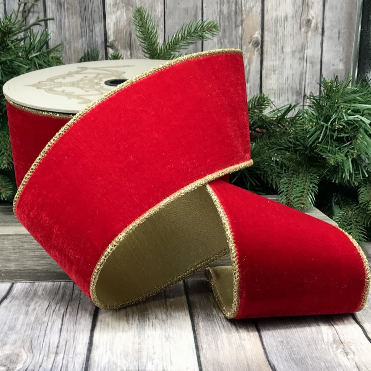 LISTON 4'' X 10 YD TERCIOPELO ROJO CON TRIM GLITTER ORO