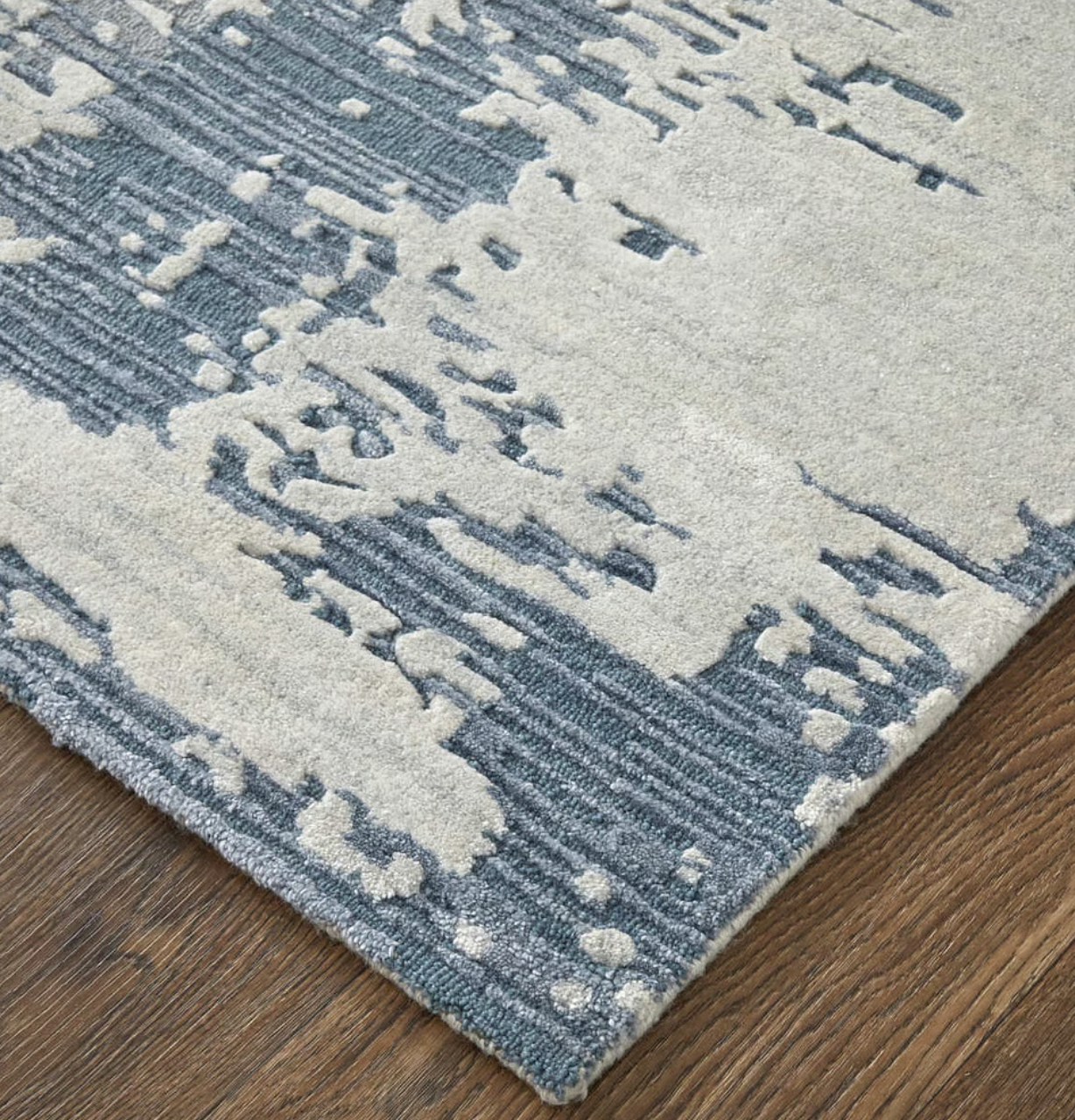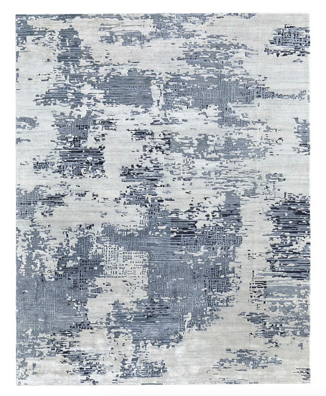 Cada tapete de esta colección es una obra maestra de textura y color; hilado a mano para crear una experiencia sensorial. Sus diseños inspirados en acuarela abstractos y patrones en tonalidades de azul y ivory.